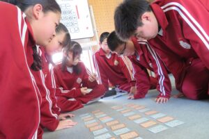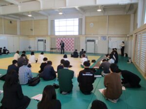 2月17日(火)全校朝会にて、1月に行われた地域間交流セミナーに参加した生徒の研修報告を行いました。沖縄の文化や歴史に触れ学んだこと、現地の中学生と交流してきたことを発表しました。一人ひとり、体験に基づく深い感想でした。