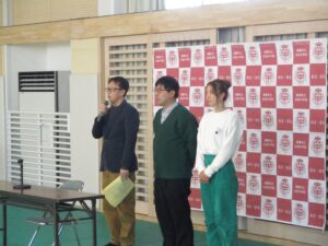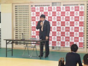 2月3日(火)の全校朝会で、今年度「南陽みらい議会」議員として活動した生徒の活動報告会を行いました。よりよい街にするために考えたことや実践したことを踏まえ、成果と課題を報告しました。貴重な経験をし成長した様子が伺える発表でした。