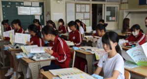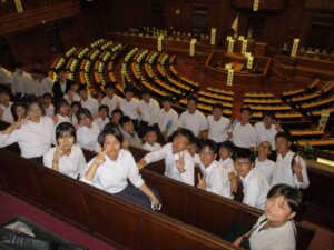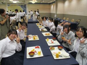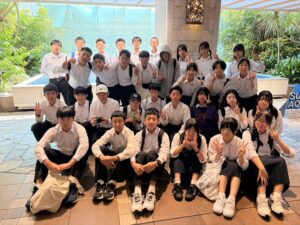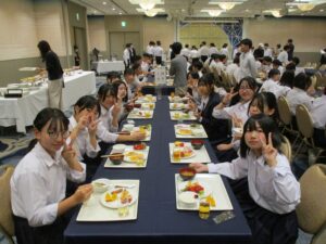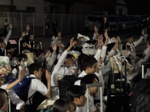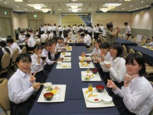 実行委員長から「修学旅行楽しかった人?」との問いかけにみんなで手を挙げて「ハーイ!」と答えていました。