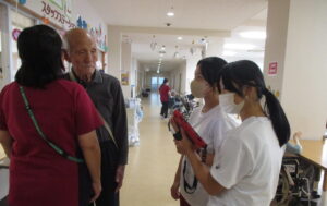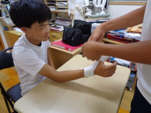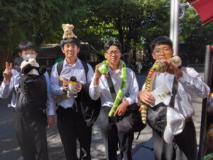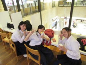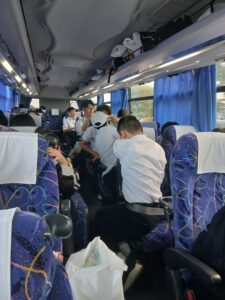 午前中はクラス別にコースに分かれて研修に出かけました。笑顔が見られ元気そうです。