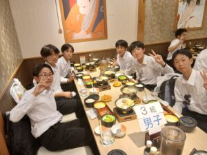 天候に恵まれ、素敵な一日になりました。本日の最後に、修学旅行実行委員会で、本日の反省と明日の確認を行いました。リーダーを中心に、修学旅行がさらに有意義なものになるよう考えています。