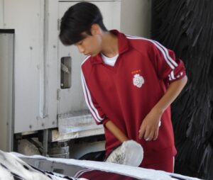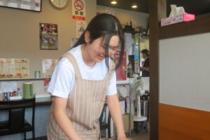 職場体験最終日、疲れも出ているようですが、「働く事の大変さ」を知ることも、今回の学びのポイントです。