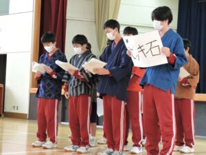 10月31日(金)赤中祭を開催しました。午前は、地域ふれあい体験講座として、その道のプロの方から、日頃学校ではなかなか体験できないことを学びました。午後は、1年生有志による赤中太鼓の発表や吹奏楽部の発表、少年の主張大会で県大会出場を果たした大浦瑞喜さんの発表などを聞きました。文化の秋にふさわしい一日になりました。