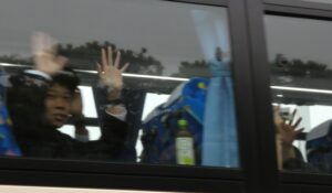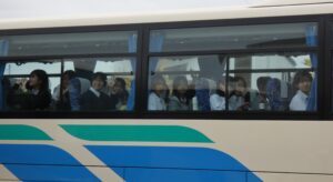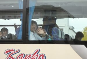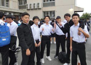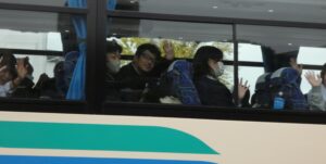 本日6時40分、薄曇りのかな赤湯中学校に集合し、7時00分、楽しみにしていた修学旅行に出発しました。