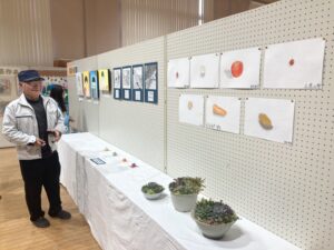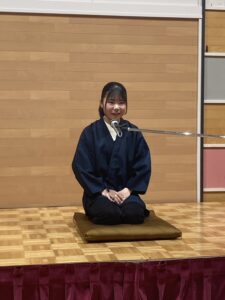 11月3日(月・祝)中川公民館にて中川地区の文化祭が開かれました。中川地区の生徒の美術作品を展示してもらい、地区の皆様に見てもらいました。また、本校2年生3名が「民話の語り」を披露し、会場を盛り上げました。3名の抑揚をつけた語りに聴衆から大きな拍手が送られていました。