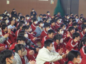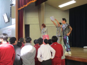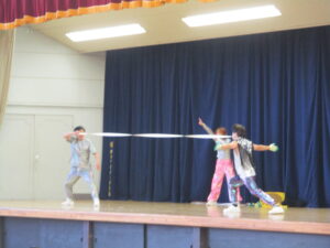 今年度2回目の全校道徳が行われました。1学期にもお世話になった中澤利彦先生が再びダンスのお仲間を率いてご来校下さいました。肌寒い中でしたが、心も体も温まるような内容でした。写真を載せますのでお子さんとの話題にしていただければと思います。