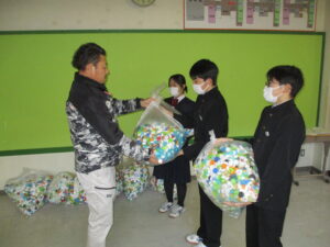 本校生徒会では、「ペットボトルキャップ」を集め、そのリサイクル費用で、世界で病気予防等のワクチンを必要としている人へ贈ろうという取り組みをしております。12月22日(月)、今年集まった分を生徒会3役より南陽市の担当の方に贈りました。「ワクチンがあれば助かる命」があることを改めて担当者からお聞きしました。ご協力頂きました皆様、ありがとうございました。