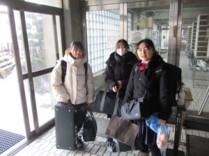 アンコン県大会へ出発 Posted on 2026年1月16日 by akatyu 1月16日(金)、明日、酒田市で行われる県アンサンブルコンテストへ出場する本校吹奏楽部の3名が、元気に出発しました。これから会場リハーサルを行い、明日に備えます。