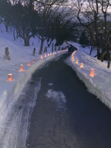 2月7日(土)なんよう雪灯りまつりが行われました。このイベントの準備活動に本校生徒3名がボランティアとして参加し、ランタンの飾りつけ等を行いました。雪灯りが映える幻想的な会場になりました。