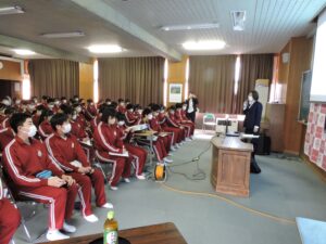 2月24日(火)3年生を対象に薬物乱用防止教室を行いました。講師に南陽警察署の清野典子様をお招きしご講話いただきました。興味本位やちょっとだけという気持ちが、一生取り返しのつかない事態を招く事や、隠語などを使って身近に罠が潜んでいることを学びました。