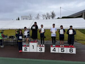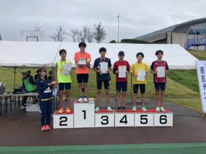 10月13日(月)第26回南陽さわやかワインマラソン大会が南陽市中央花公園周辺で行われました。心配された雨もあがり、秋を感じながら出場選手は走っていました。3km中学生男子の部において、青木想さんが第1位、和田明真さんが第4位、3km中学生女子の部で山口夢結さんが第3位という成績を収めました。青木想さんには南陽市陸上競技協会より優秀選手賞も贈られました。