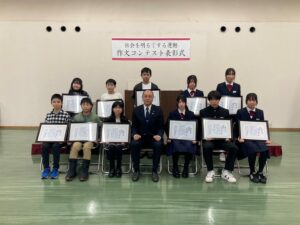 12月12日(金)南陽市役所で「社会を明るくする運動作文コンテスト南陽市審査会」の表彰式が行われました。入賞した本校生徒5名は、南陽市長白岩孝夫様から賞状を授与していただきました。結果を以下に紹介します。尚、5名の作文は県審査会へ推薦されております。